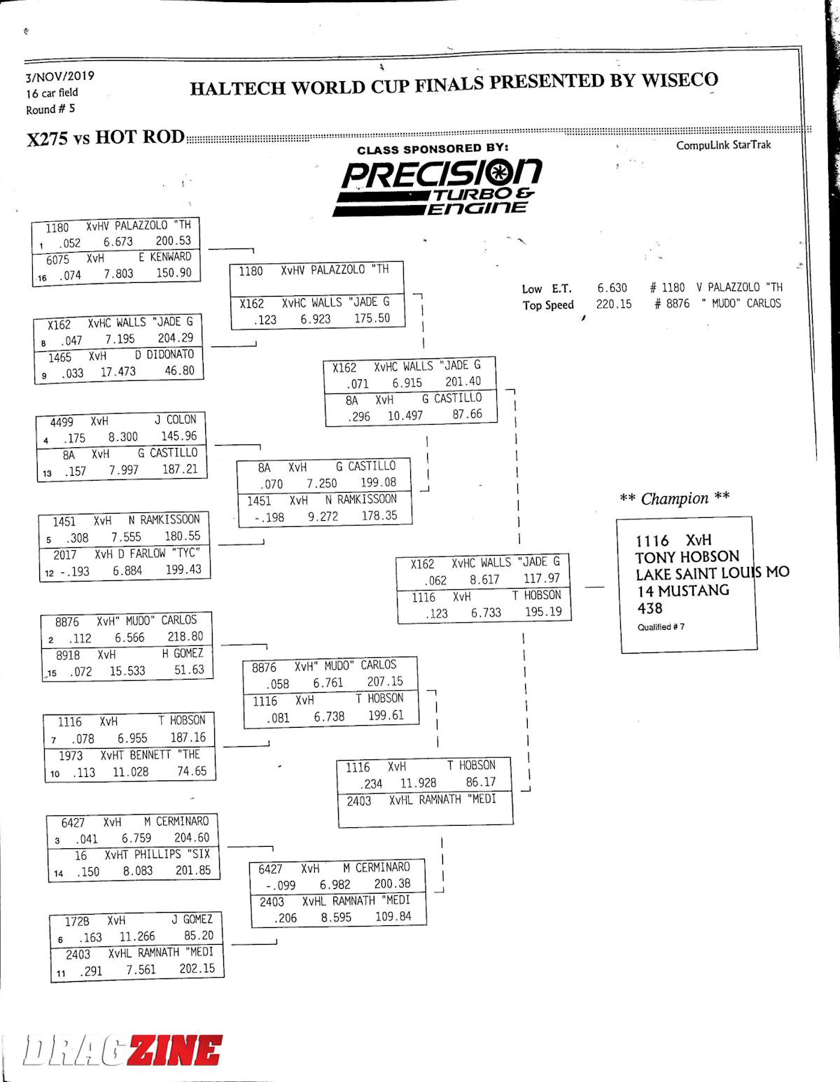 The X275 vs Hot Rod class was dominated by the domestic X275 racers all throughout qualifying and that trend continued into eliminations. Craig Walls qualified in the eighth spot and began his march to the final round with a series of solid six-second passes. Walls would face Tony Hobson in the finals who fought hard to make it to the final frame of racing. When the tree dropped Walls spun the tires and Hobson rocketed down the track clean and green for the win.