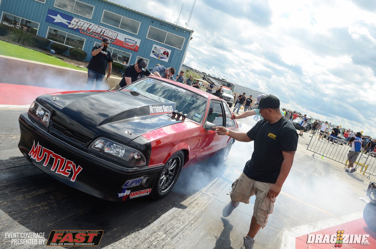 r3The richest payout in no prep racing history was on the line at the inaugural Bounty Hunters No Prep Grudge Nationals in San Antonio, Texas over the weekend, and as fate would have it, it was a Pro Modified racer — not a grudge or street racing star —  that claimed the cash. Texas racer Steve Wiley, not even planning to attend the event initially, showed up on Saturday morning and, without so much a test pass in his blown Corvette, scorched through the field and defeated Ricky Granado in the final for $50,000. Click here to view our SpeedVideo Livestream coverage.