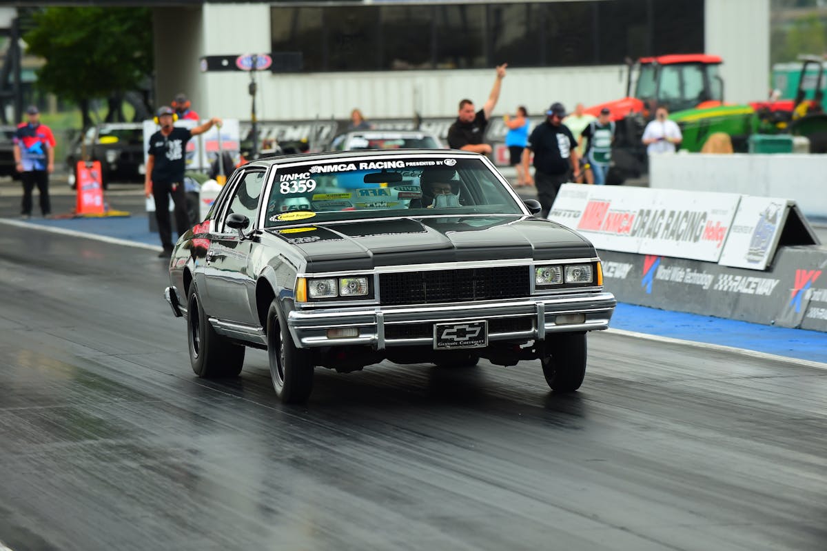 In Detroit Truetrac Nostalgia Muscle, Tim Boggs tripped the timers at 11.00 on an 11.00 index in his Chevy to lead qualifying, but the final round belonged to Brenda Blair and her Caprice and Chad Brewer and his Nova. The drivers were tight on the tree, and after an oh-so-close double breakout bout, Blair won with an 11.99 on a 12.00 index over Brewer and his 10.49 on a 10.50 index.