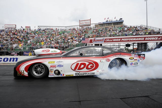 After Matt Smith beat Scotty Pollacheck in the bike final, Rickie Smith, driving his IDG Chevy Camaro, sealed the deal in the all-nitrous Pro Mod showdown against Al-Anabi’s Mike Castellana.