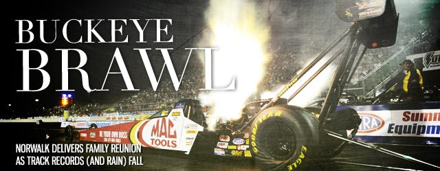 NHRA Pro Stock Motorcycle’s Matt Smith and Pro Modified-racing dad Rickie Smith brought the family reunion to the Summit Motorsports Park winners circle Sunday at Norwalk, Ohio.