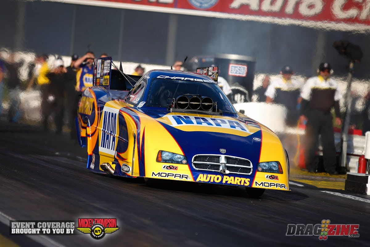 PEDREGON SHINES IN FINAL ROUND – Funny Car race winner Cruz Pedregon said his final-round victory over Courtney Force and her dad’s well-funded John Force Racing organization was encouragement for the dwindling independent teams. “It’s good to know the independent guy still has a say in this deal. We’ve probably left five or six races on the table this year and we put it together this weekend. We placed third overall last year, and after winning today, we finished fourth this year and I think we’ve proved we belong with the top teams. We’re a smaller independent team, but with the way we finished, I think we can build on this and be one of the favorites heading into next season. We’ve always had a fast car. The new Toyota Camry body really had a big effect in a good way this season. Toyota created a body that’s as good as any in the field.”