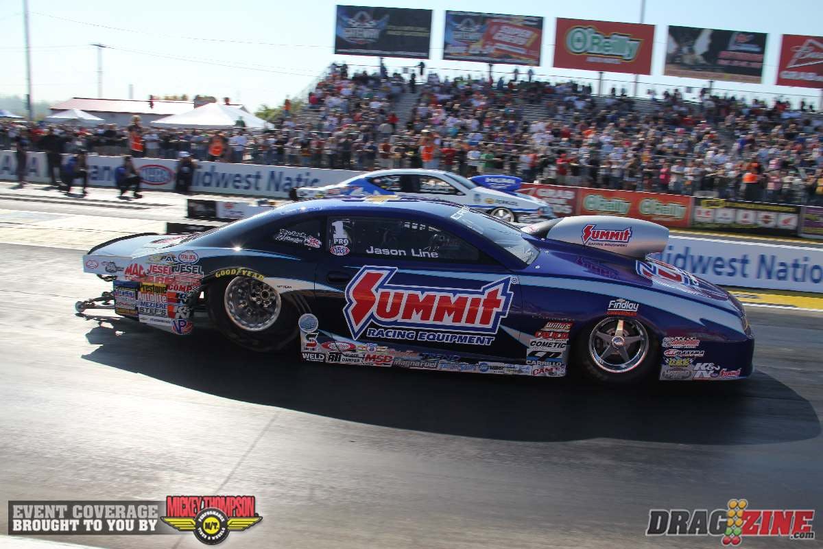STOUT NUMBERS – Jason Line set the low E.T. and top speed of the meet (and both ends of the track record) among Pro Stockers with his No. 1-qualifying performance of 6.496 seconds and 213.47 mph. Line’s reaction: “All in all, pretty darn happy to have a starting spot here at St. Louis. Last time I was here I didn’t get one. So this place does not necessarily have fond memories for me. Maybe this will be one.” He made it to the semifinals.
