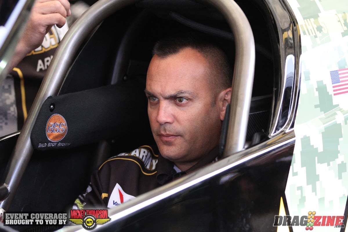 SOMETHING TO THINK ABOUT – Tony Schumacher, the master of electrifying 11th-hour miracle passes that win championships, said Sunday evening, “I always say God has a plan. And maybe His plan for this year is for it to come down to one run for the championship.” The U.S. Army Dragster driver is 83 points behind leader Antron Brown and 62 behind second-ranked Spencer Massey – both his Don Schumacher Racing teammates — as the tour moves to Reading, Pa.