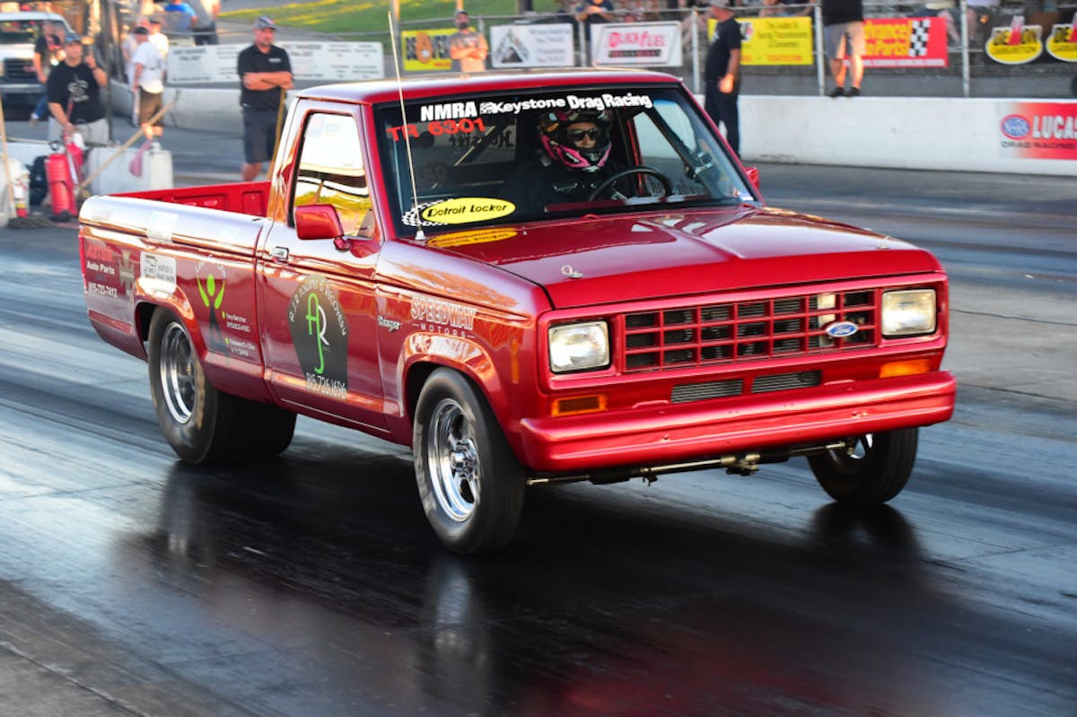 Hailing from Elwood, Illinois, Amanda Saad cut a quick 0.002-second light in qualifying to put her ’83 Ranger into the number one position for Detroit Locker Truck & Lightning. Saad’s success story didn’t end there, and she took home five straight wins to finish out her weekend with a happy ending by making things official against Mike Motycka in the finals. Randy Conway, who went out in round three of eliminations, wound up earning enough points to be named the season champion for the year for the third year in a row.