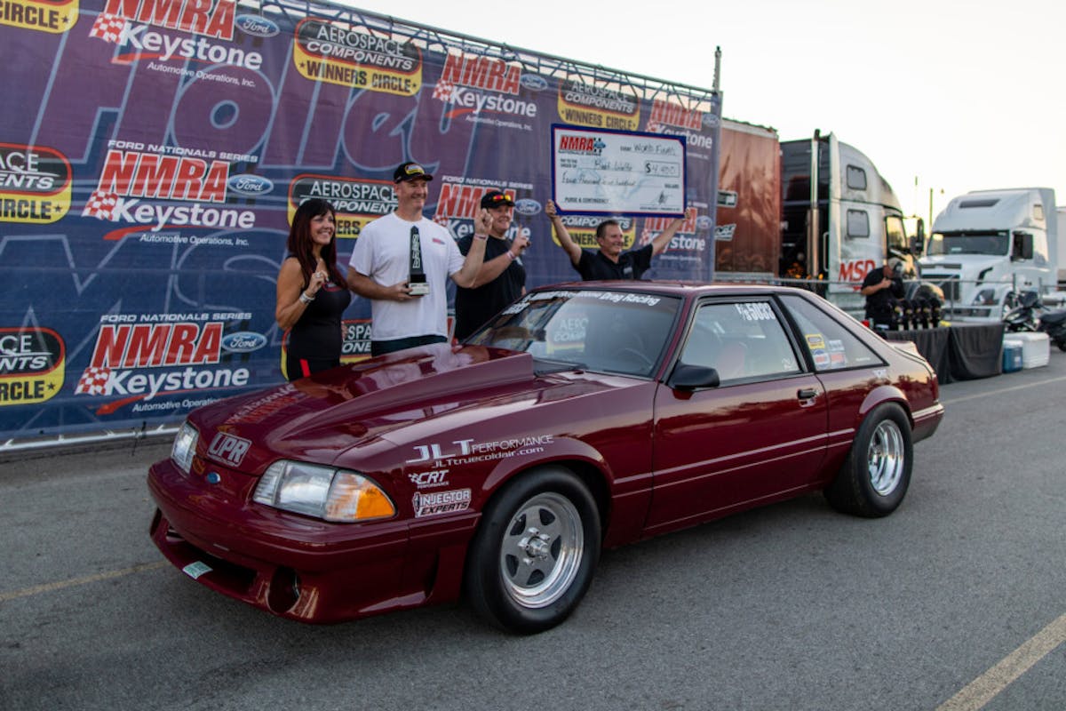 In Steeda Autosports Limited Street, Sondra Leslie was the quickest qualifier as she ran the quarter mile in 8.572 at 158.73 mph with her ’85 Mustang. Once the show got started, it was all about Michael Ciborowski of Trenton, Illinois, as he powered through the first three rounds to meet Matthew Williams in the finals. There, Ciborowski stopped the clocks in 8.733 at 155.10 mph with his ’14 Mustang and continued on through to the Aerospace Components Winner’s Circle to celebrate not only his win but also his championship.