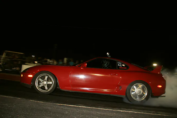 Treap took a good holeshot with a .107 reaction to Mendez’ .180, but downtrack, Traaps Supra rolled out to another mid nine-second run, scoring the Real Street Performance Real Street class win with with a 9.55 at 138 to Mendez’ little Honda’s game effort 9.75 at 151. Not bad for a build based on a 165,000-plus mile-long block.