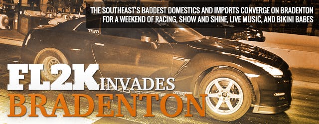 One of Florida’s biggest automotive events, the annual FL2K2015, invaded the Bradenton Motorsports Park the weekend of October 9-10. The event kicked off on Sunday afternoon as the skies cleared following rain showers on Saturday. The Bradenton staff did an excellent job preparing the racing surface for the event, despite the troublesome weather. But this isn’t just a race — it’s a lifestyle event that culminates with a a car show, bikini contest, a DJ spinning music throughout the weekend, import and domestic cars and car enthusiasts, various manufacturers, and head-to-head drag racing. Now in it’s third year, the attendance at FL2K has grown significantly, and brings out many of the baddest cars in the Southeast to battle it out.