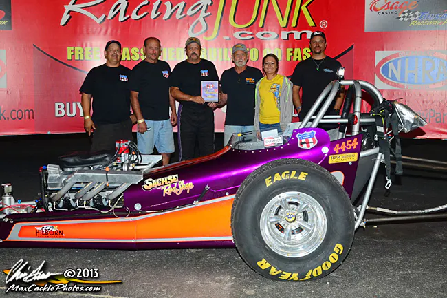 Bates showed his strength again with a strong 6.34 at 219 mph in a semi-final competition single to advance to the final round to face the winner between Harless and Wayne. Both drivers clicked off side by side 6.48 elapsed times with Harless earning the win at the starting line to advance to the final against Bates. In the A/Fuel Dragster final, Kin Bates’ 6.31 at 221 mph was just enough to hold off Harless’ best pass of the event, a close 6.44 at 214 mph as Kin Bates and team took home the Nitro Nationals victory back to California.