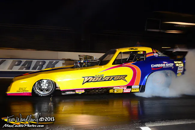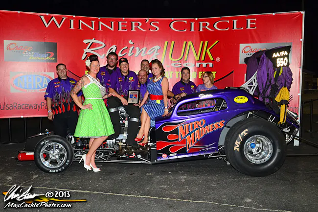 The 2013 Osage Casino Nitro Nationals was a huge success across the board with packed grandstands and a pit area full of unique nostalgia machines of all kinds. Winners accepted their trophies and champagne with flash bulbs bursting throughout the winners circle and after a post-race concert and celebration, the lights went out on another memorable outing for many in Tulsa.