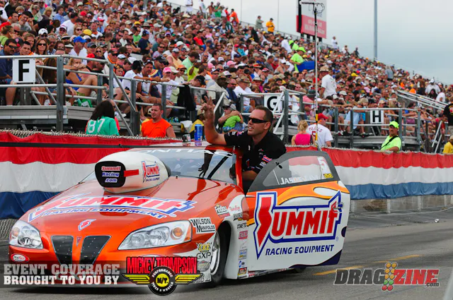 In Pro Stock, Line came out on the last pass of Pro Stock qualifying and took the No. 1 qualifier away from his teammate Greg Anderson. Line drove his Summit Racing Pontiac GXP to a 6.603 at 209.01 to get his fourth No. 1 qualifier of the season and 21st of his career.