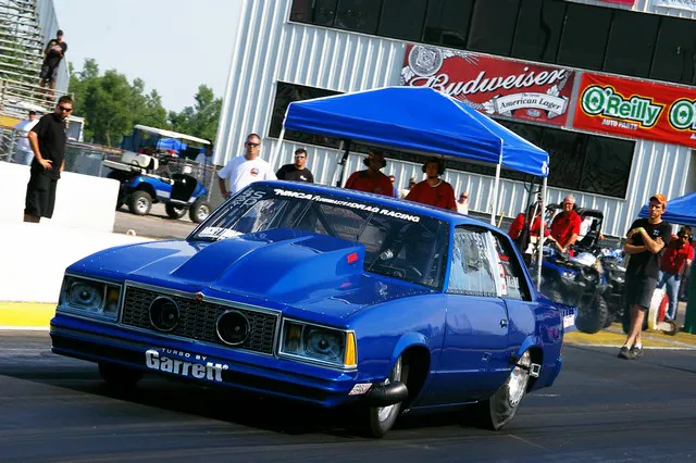 Mark Micke behind the wheel of a beautiful turbocharged '78 Malibu. He would go on to win the event.
