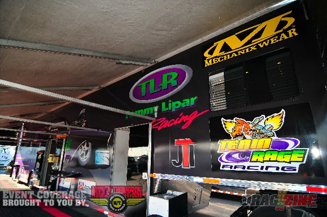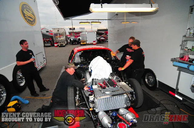 Frankie The Mad Man Taylor is running a Lenco tranny this weekend and crew chief Paul Taylor has a handle on it. They were only on 7 cylinders last night as The Mad Man logged a 3.85 @198.41
