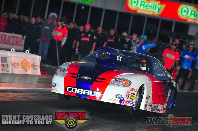 John MonteCalvo and his Cevy Cobalt are at number 3 with a 4.085 @178.78mph. Number one at the end of the day went to Cary Golforth with a 4.048 with a new world record speed of 179.04mph. Last years event winner Brian Gahm is in second with a smooth 4.077 @177.72.