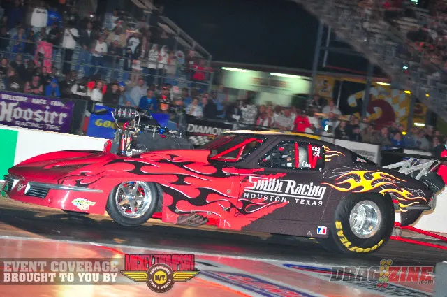Pro Nitrous has the potential to also have a new world speed record set. Both Burton Axier and Jim Halsey can accomplish the feet with backup runs. Axier is in with a 3.830 @ 197.91mph and Halsey can claim the fastest speed ever for the class with a 3.883 @ 198.99. Tricky Rickie Smith, Pictured, is in at number 6 with a 3.952 @191.65.