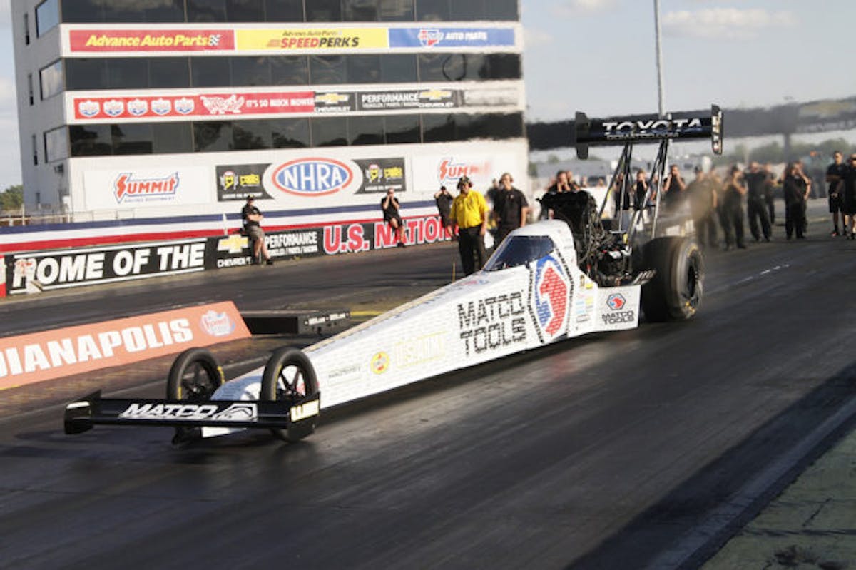 Tony Schumacher led the Top Fuel category on Wednesday during the first of two days of testing for the Chevrolet Performance U.S. Nationals at Lucas Oil Raceway at Indianapolis. Defending Funny Car event winner Matt Hagan led the Funny Car class.