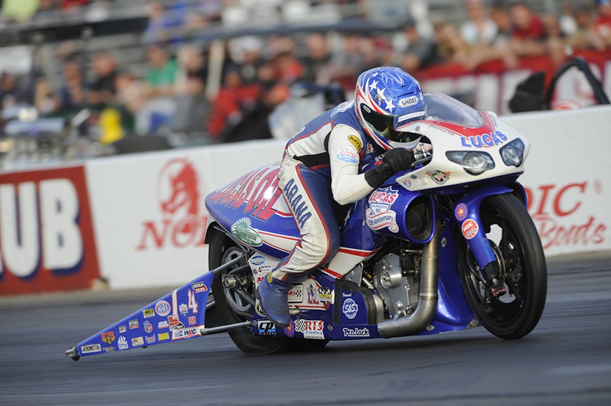 Arana Jr. raced to his third No. 1 of the season and 16th of his career in Pro Stock Motorcycle, powering his Lucas Oil Buell to a leading effort of 6.832 at 197.62. He will open eliminations against Fred Camarena.
