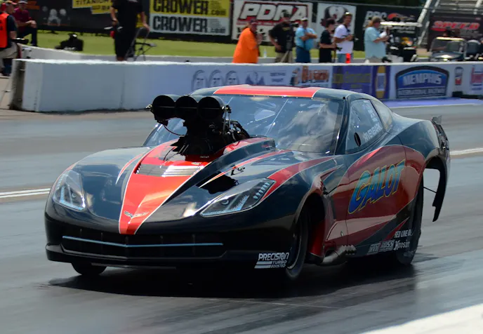 Kevin Rivenbark claimed he was starting to have second thoughts about the 2015 Corvette his GALOT Racing team had debuted two races earlier at Martin, Michigan in June. Not really, but he admitted to at least feeling anxious about going out in the first round at Martin and then again at the next event in Budds Creek, Maryland. So when he qualified the beautiful, new, roots-blown Bickel car fourth with a 3.88 at 191.67-mph pass for the PDRA Memphis Drags, the Wallace, NC-based driver said he felt ready to race.
