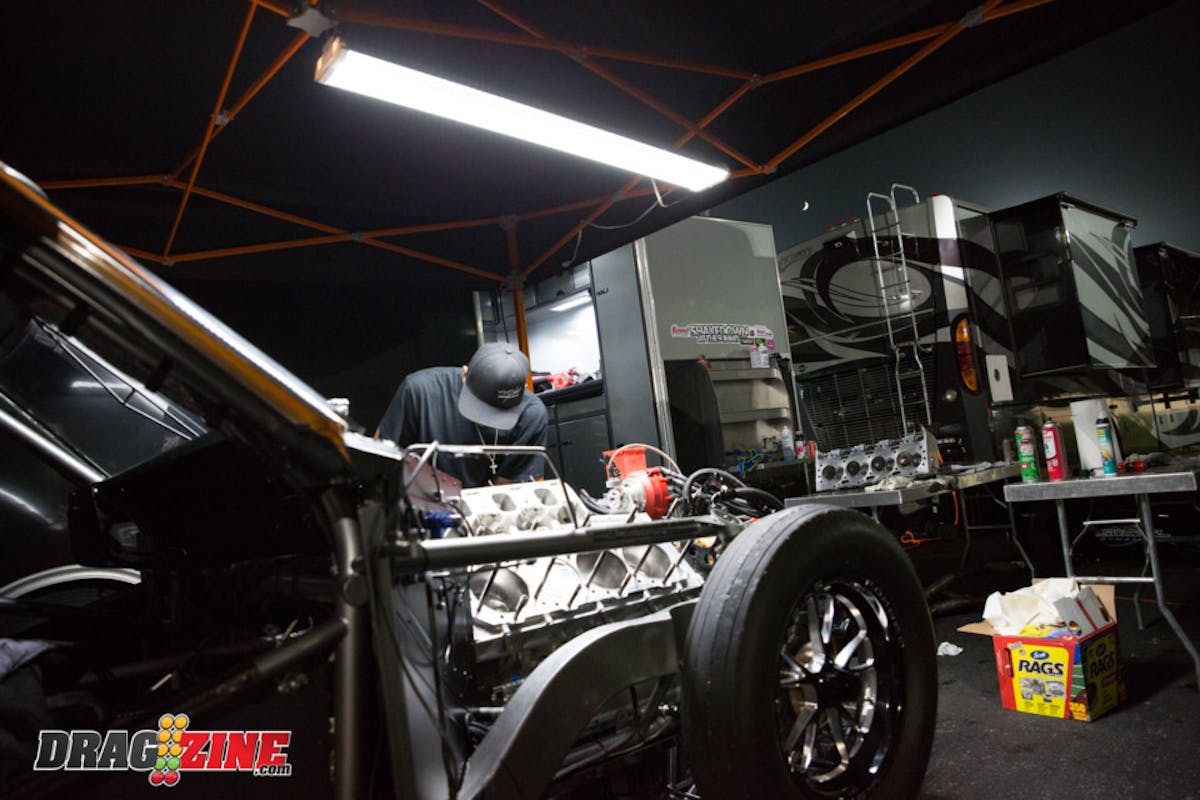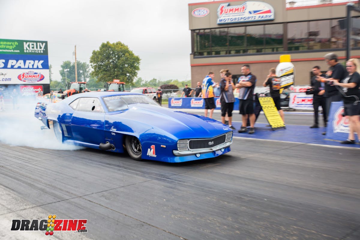 There's nothing better than a fresh racecar and when it's a 3,400 horsepower Pro Mod the feeling is even better. David Norris took delivery of his brand new G-Force C7 Corvette Thursday before testing at Summit Motorsports Park. His team had never seen the car or its 521 cubic-inch Jeff Fowler Hemi until it showed up at the track at 10:00 AM. The Noonan Racing heads on the engine support a large C-Rotor blower that is making some big power already. In an early shutoff run during testing, the Corvette registered a healthy three-second elapsed time. Brian Chin had to do some thrashing on his Outlaw 10.5 Camaro late on Thursday night to get ready for qualifying today. “We had a little mishap after we put new head gaskets on and got water in the oil. We decided to skip testing to make sure things were repaired correctly and ready to go. Everything was drained out of the engine, it was cleaned it up, and will be ready for qualifying today. The goal is to make good consistent passes and have some fun racing this weekend.”Carl Stevens Jr. dropped the hammer on the Pro Mod field during the first round of qualifying with a 5.64 at 261 MPH. This comes after the team struggled to get down the track during testing on Thursday. The booming pass looked relatively effortless for the Jim Bell owned machine and it should pick up more during the Q2 session tonight.
