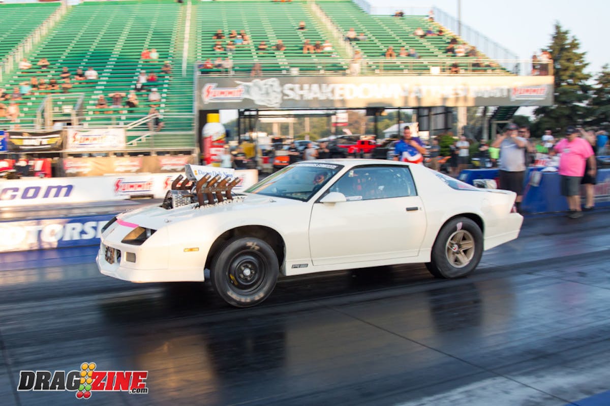 Ultra Street class record holder Mike Thompson has been riding a wave of success in his nitrous-fed Camaro recently and was able to secure the top spot at the Shakedown. "The name of the game all weekend has really been power management. I've been working on making sure I pull just enough to get the car down the track while still running fast. Today conditions will still be hot so it's going to be tricky to keep things were we want power wise and avoid spinning." With track temperatures reaching the 135-degree mark all the radial tire racers had their hands full trying to make a clean pass. X275 number one qualifier JD Campbell was nearly a victim of the hot surface during the first round when he spun at the hit but was able to recover and pick up the win.