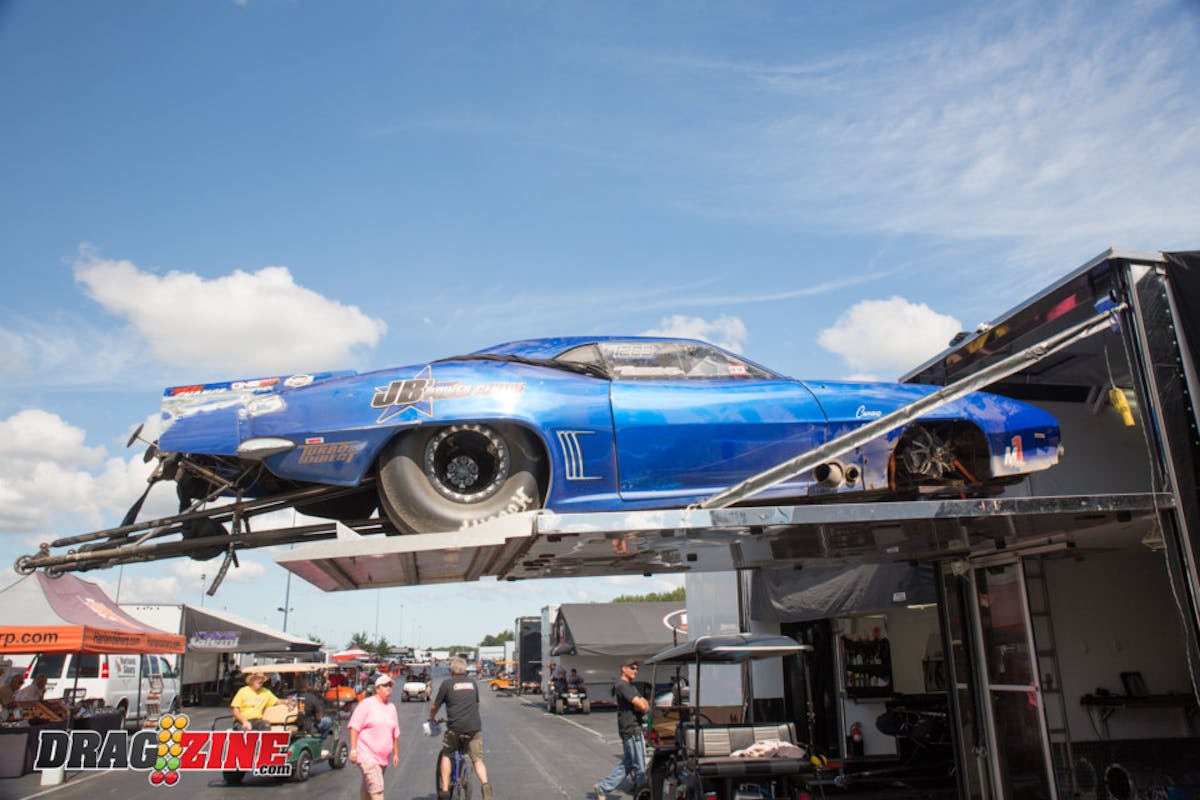 Melanie Monagon has been racing since she was 12 years old and started out behind the wheel of her 1972 AMC Gremlin. In an effort to take her racing career to a new level she purchased a 1967 Shelby Mustang Pro Mod and is learning how to make this car work. "I made the switch because the gremlin was tired and had seen it’s better days after racing so many years with a blown alcohol engine in it. It was time to take the next and Pro Mod is my dream and this car gets me closer. Right now we're running a blown small block with a 6-71 blower in the car and we have a bigger one for next year. My goal is to just learn how to drive this car correctly this year and then start stepping it up more next year while running in the seven-second range. Jimmy Detrick is driving the 1972 Hurst Olds owed by legendary chassis builder Keith Engling in Pro Mod and is currently sitting safely in the show at ninth on the qualifying sheet. The team had a very long night due to some connecting rods exiting the block during the first round of qualifying Friday at the top end of the track. Engling drove to his shop to get a spare bullet and the team thrashed until the wee hours of the morning to get the Olds ready for qualifying today.