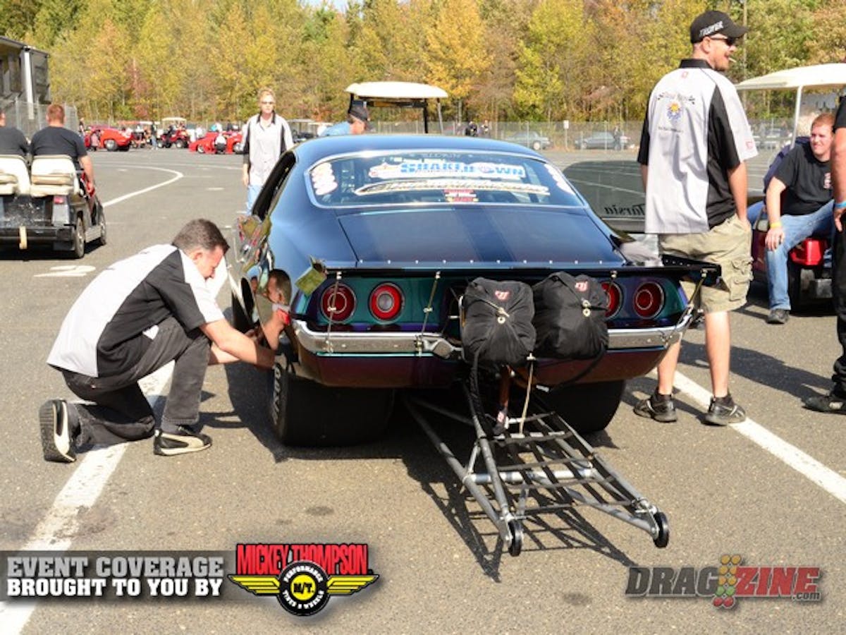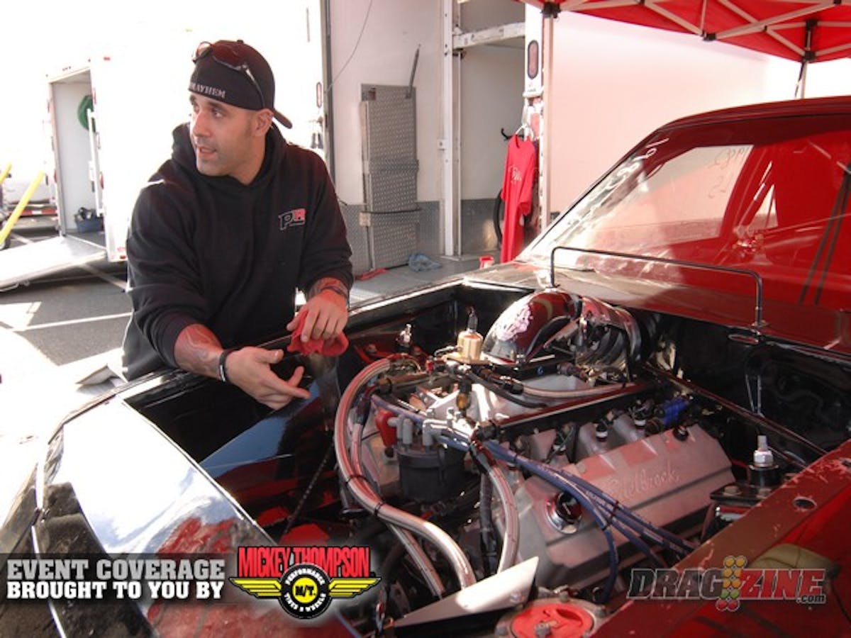 A crewman for Tom Tarsia’s NY Camaro readies for first round. Tarsia took out Chris Cadotte’s Dodge truck in Heavy Street action.