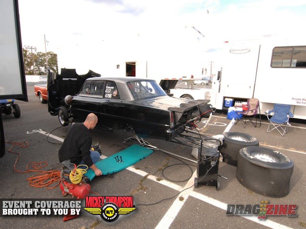 Steve Woolley readies his 66 Nova after MIR testing. He reports having lots of work to be ready for this weekend. Woolley is running Heavy Street and has his father helping tune the car.