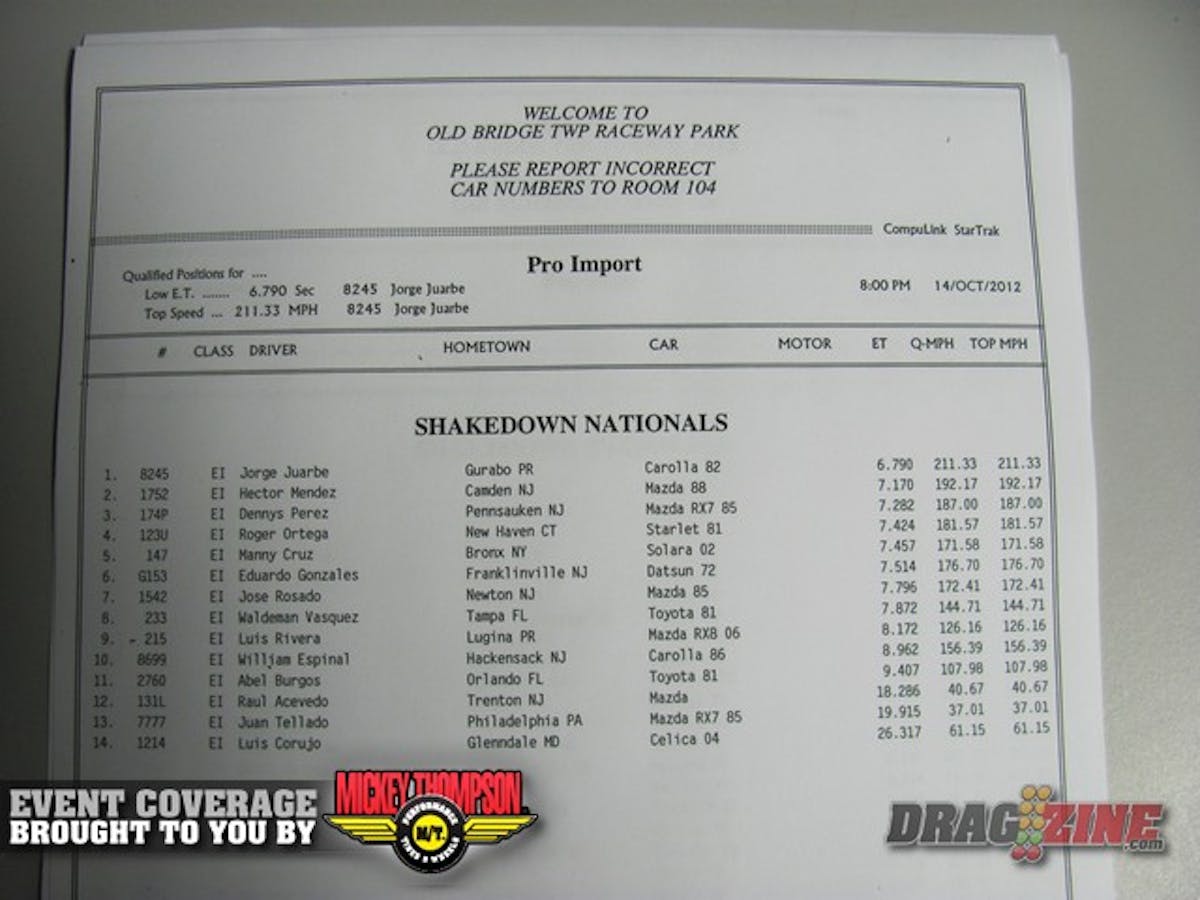 One of the most storied race tracks on the East Coast, Old Bridge Township Raceway Park proved once again to be the record-breaking facility it has always been known to be. Shakedown Nationals 10, under the guidance of promoter Dave Hance and Michelle Marchase and Eddie Krawiec of RP and the entire staff gave racers the chance to strut their stuff. Raceway Park gave their best even when facing a computer crisis that fried several computer parts, pieces and scoreboards. A big thanks to RP for not giving up!