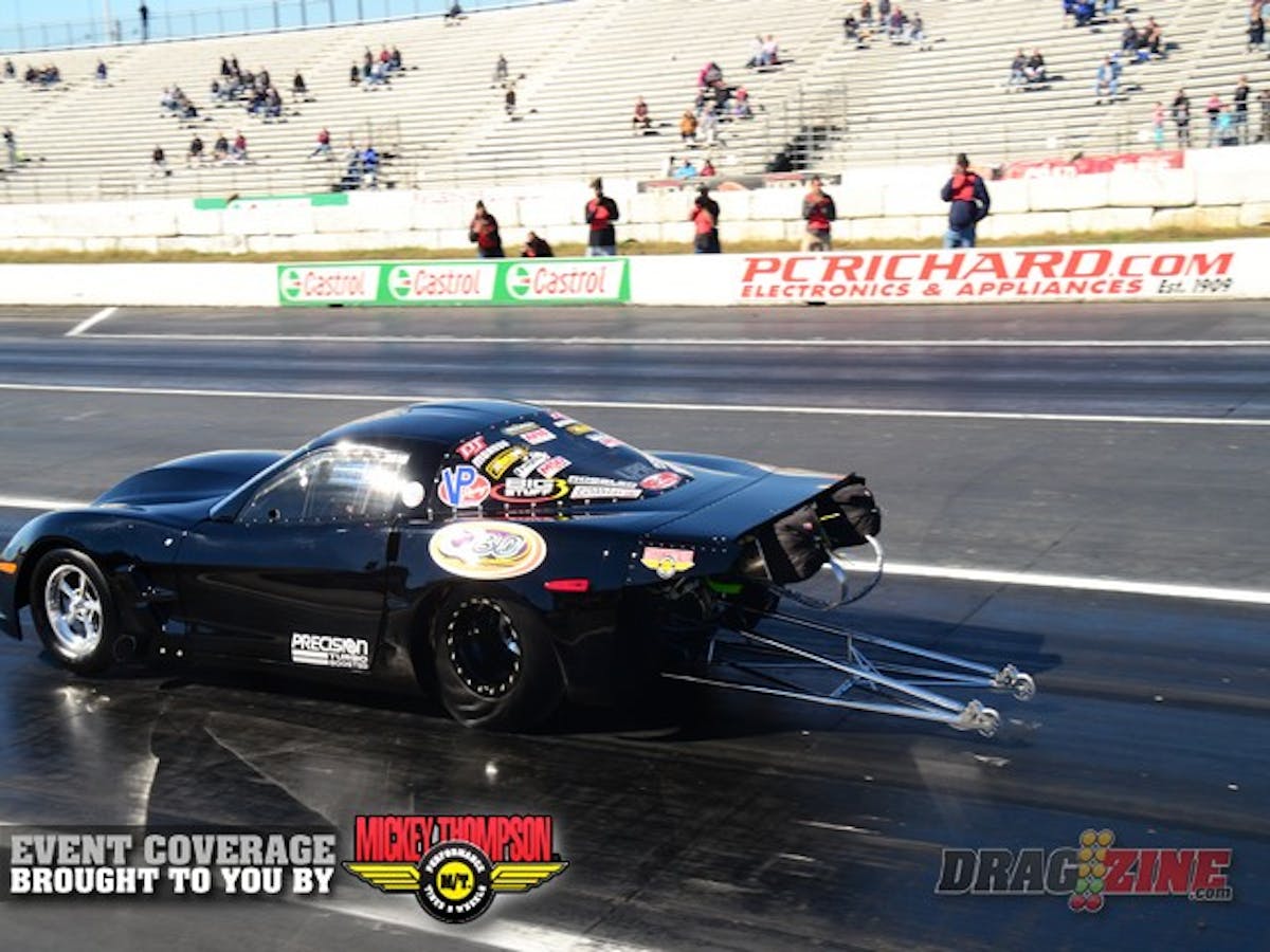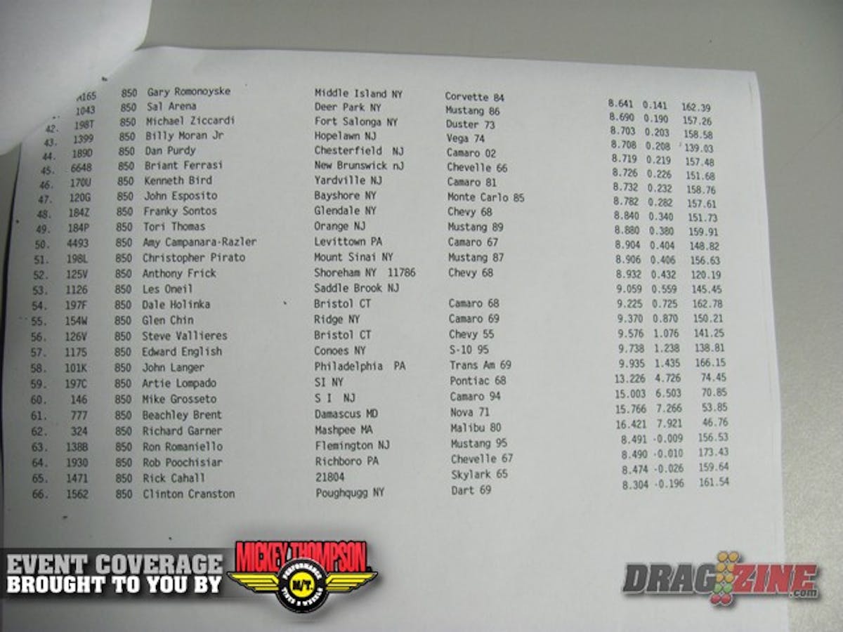 Kyle Buonocore stood his X275 Mustang on one tire, landed hard, and claimed the #9 spot for the class after 2 runs Friday.The Middlesex, NJ driver was lucky to land shiny-side up after getting so much air under the car at 200 feet.