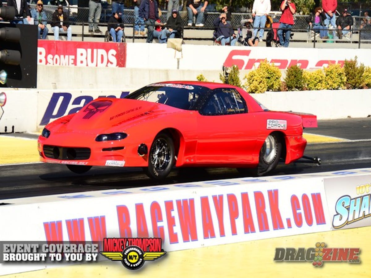 John Schroeder waits in the lanes before Heavy Street this morning. He made a nice #2 4.469/164 pass with his 2002 Camaro.