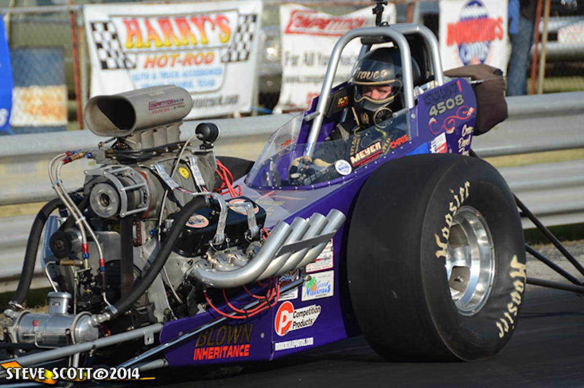 The 5.00 Nostalgia Eliminator 2 category brought it’s largest field of the season to Ardmore Dragway as defending series Champion and points leader Bee Godwin had to be on his game as competitor Tommy Drozd was steadily making up ground with a class leading four final round appearances heading into Ardmore. Godwin’s 5.02 led the field of nine with his second number one qualifying effort of the season, which also earned him the full sixteen points towards the Meyer Enterprises NE 2 Shootout which he also leads over Tommy Drozd. Ted McCord wheeled the “Senior Moment” injected nitro slingshot dragster to the number two qualifying position with a 5.035 followed closely by Drozd’s 5.036. Thomas Hixson and the “One Wild Ride” team secured the number four spot with a 5.11 as the teams returned to the pits to prepare for the opening round of eliminations.