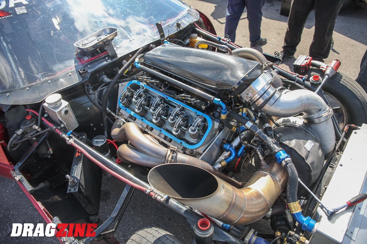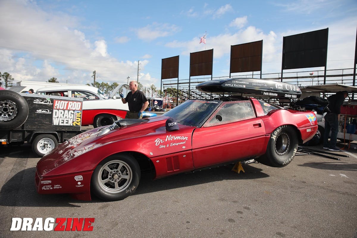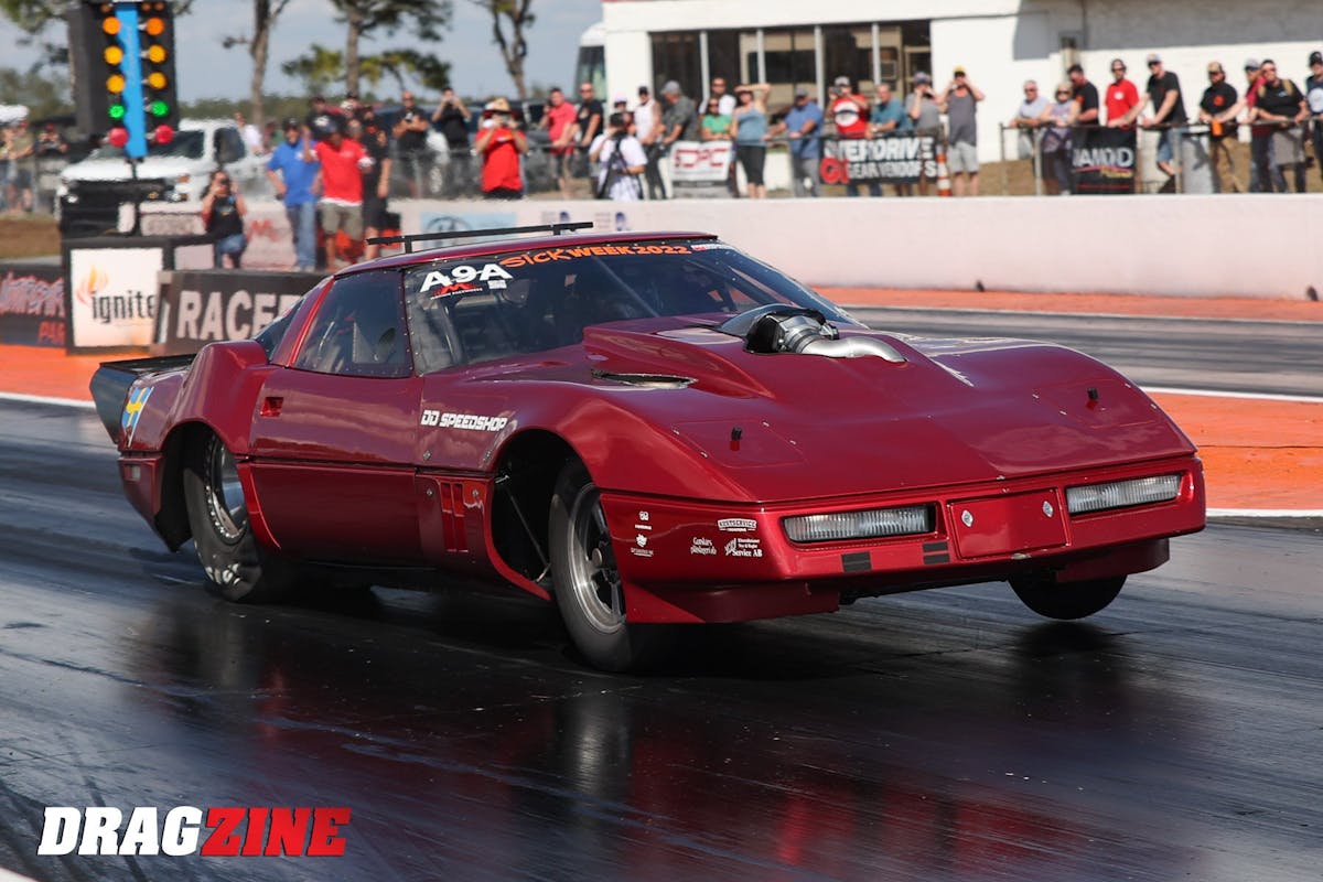 The door for the Unlimited class was left wide open, and Swedish racer Stefan Gustafsson, along with his co-pilot Eric Yost stepped up to bring home the title. Gustafsson’s 1989 Corvette received plenty of attention at Yost’s shop Customs By Bigun to get it ready for Sick Week. The 6.677-second E.T. average that Gustafsson recorded was achieved thanks to a 548 cubic-inch BBC that was built by Pete Harrell at Harrell Engine & Dyno. The rat motor features a cast aluminum block, 23-degree cast Brodix heads, and a Jesel valvetrain. A single 118mm Precision Turbo & Engine turbocharger provides the boost, while an M&M Transmission TH400 sends the power back to the rear tires.