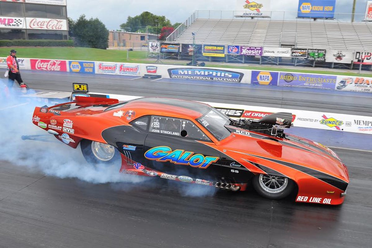 As a successful tractor puller who only recently began driving high-horsepower doorslammers on pavement, John Strickland won’t make any boastful claims about his driving abilities. The GALOT Motorsports driver looked like every bit of a Pro Boost veteran this weekend, though. Strickland was dominant at the Memphis Drags, qualifying number two and firing off low elapsed time of all three rounds to win his third consecutive PDRA event. And to his credit, he also left the starting line first every round.