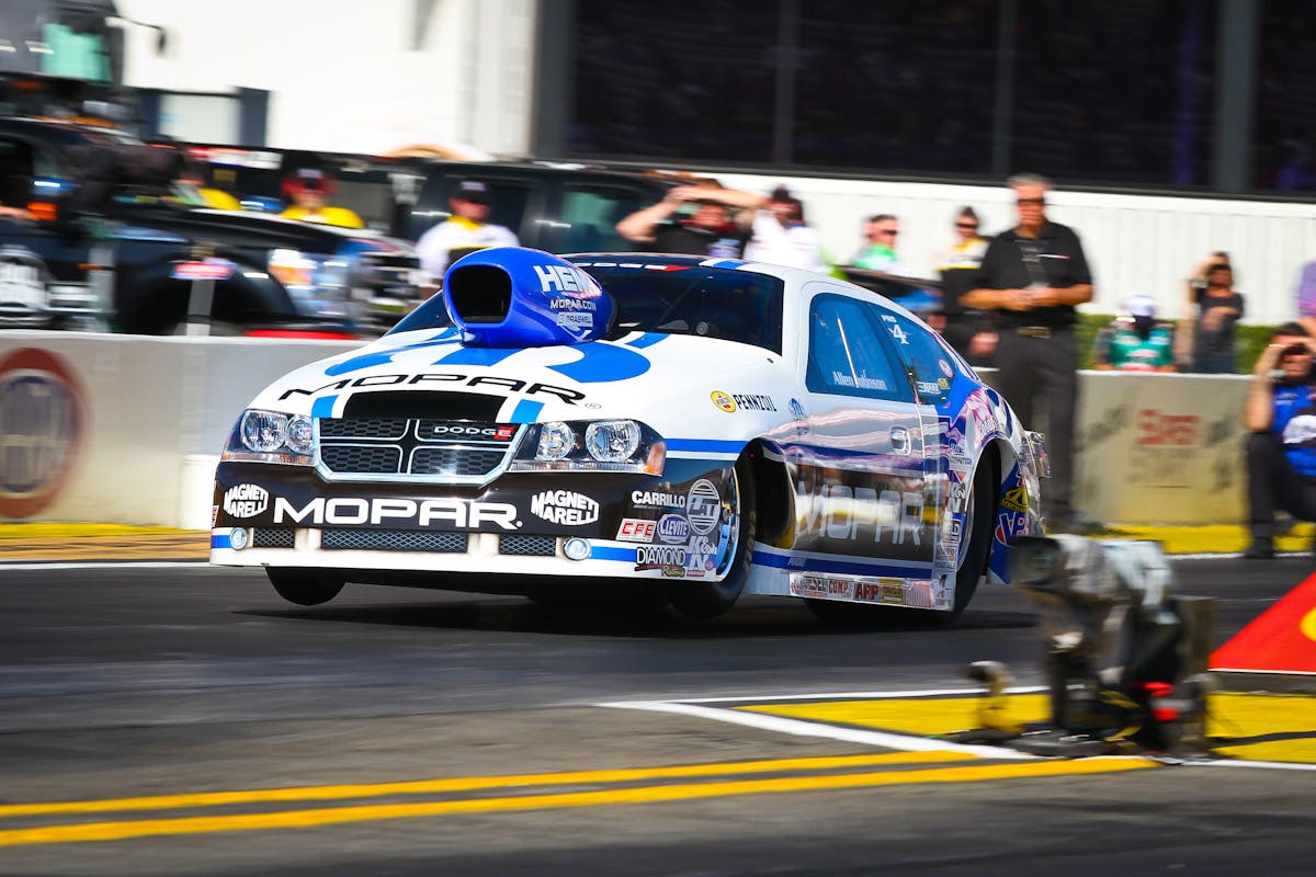 He said his Team Mopar / J&J Racing Dodge Avenger is “a real quality machine right now.” His evidence includes the Las Vegas victory and four consecutive races with at least a semifinal finish, as well as either a No. 1 or No. 2 qualifying position at the past four events. Moreover, he has set the top speed of the meet at each of the last two events.