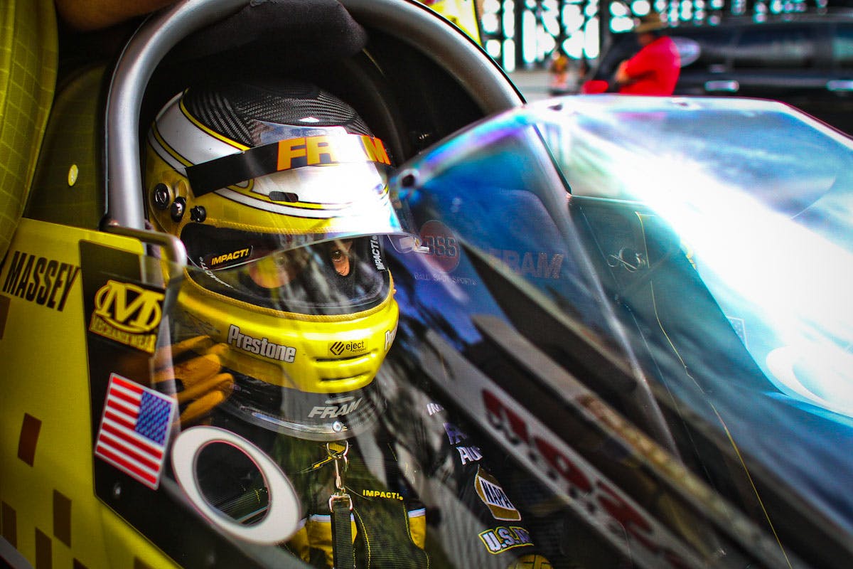 Spencer Massey said his crew, which was on-target enough to earn a class-leading three victories so far, made the mistake of trying to keep up with eventual winner Steve Torrence at Atlanta. Todd Okuhara and Phil Shuler, his crew chiefs, watched the cars running ahead of them in the quarterfinals at Atlanta and thought they could master the hot, tricky racing surface. “We tried pushing for our time to be as quick (as Steve Torrence’s 3.848), and it bit us,” Massey said. “Our motto is not to beat ourselves and we beat ourselves.”