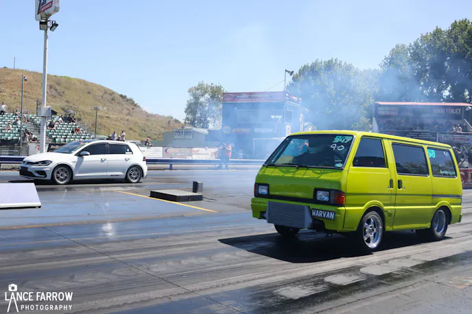 Rules were kept simple: competitors had to be capable of running 9.99 or quicker, have a current warrant of fitness (required to drive on the streets in New Zealand), possess proper vehicle certification for any modifications, and pass tech for the elapsed time they planned to run. The classes were split into 9.99 to 9.00, 8.99 to 8.00, and 7.99 or quicker. Each round featured random chip draws to determine matchups.