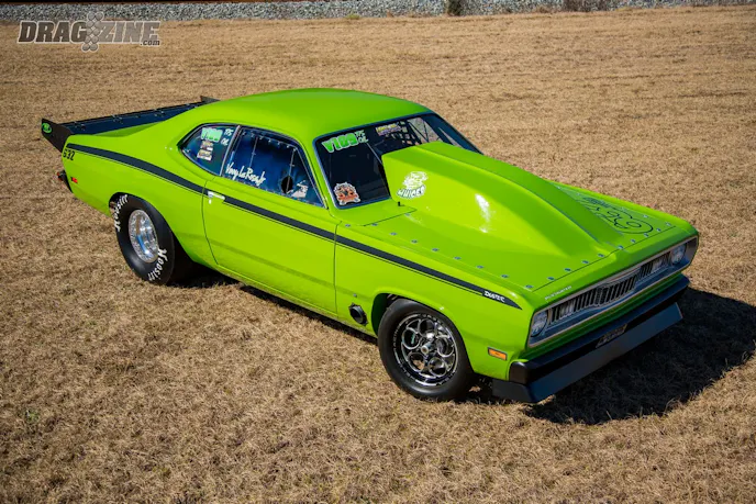 San Diego based Jesse Callier runs this 67 El Camino in Mickey Thompson 275 Drag Radial with a single turbo LS from Faustet Racing Engines. The flawless paint and body was done by Nick Batalia at Loose Cannon Customs. He sits in eleventh spot in class with a 5.46 at 130 MPH. In Outlaw 10.5 qualifying last night this 41 Willy’s had a wild ride on the top end, spinning around and just brushing the wall in a display of great driving and a bit of luck the only damage was a scrape on the rear fender.Precision Turbo Pro Mod had many racers struggle with the surface including Troy Coughlin in the Jeg’s 2015 Corvette who was half the first pair out in class last night with the track temp in the mid 50’s. The track did tighten up later in the session.Rob Moore runs this 1960 Frankinpalla in Pro Mod with Minor Brothers horsepower based out of El Cajon, California. He sits third in class with a 6.15 at 240.John Stanley was the sole car in the 5’s napping a 5.96 at 195 MPH clicking it early on the pass.Dragzine’s own James Lawrence earned top qualifier in Magnafuel XDR last night with a 4.53 at 154 MPH. Bill Trovato is assisting the crew with tuning the car this weekend.