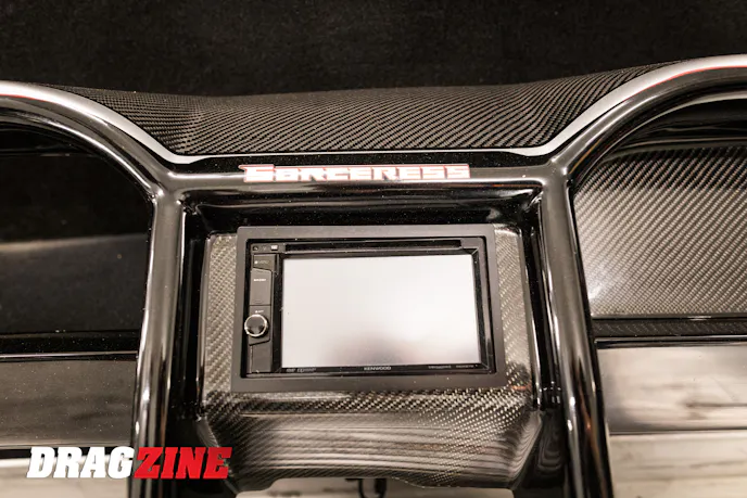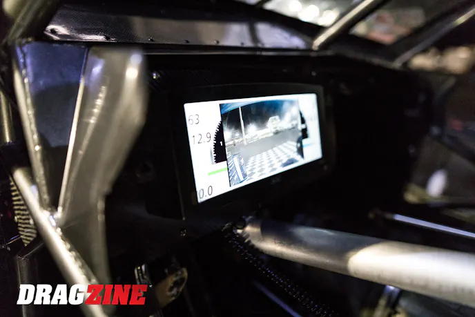 The 6.5-year-long project is not just a race car. It’s outfitted with a backup camera that activates not only when the car is in reverse but also during burnouts so Don can keep tabs on how the burnout is progressing, and the view shows up right on the dash in front of the driver.