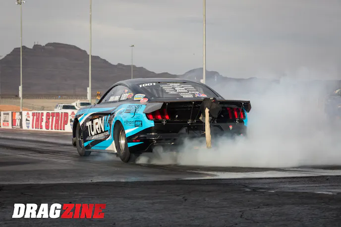 It’s taken him an entire year, but John Urist is ecstatic with the progress he’s made of late with the Turn 14 Distribution Mustang. Although he hasn’t put together the complete pass he’d like as of yet. he turned in a 1.09 short time during today’s final qualifying session–a personal best in any car he’s ever owned. A malfunction in the air shifter mechanism denied him the quickest elapsed time he’s looking for, the team figured out the issue and will be ready for eliminations tomorrow.