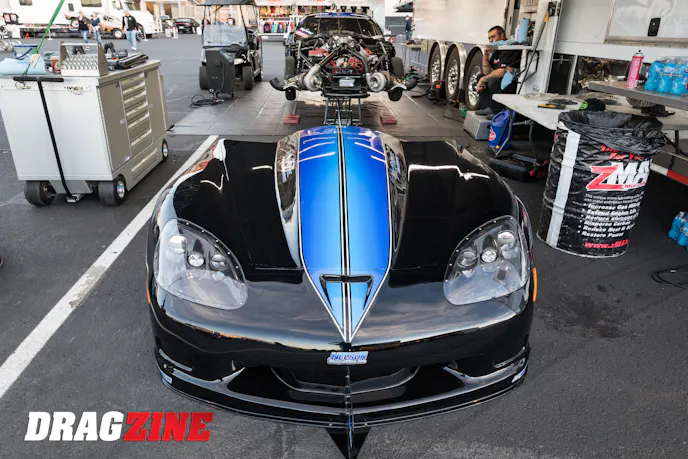 There’s an all-new 959 cubic-inch Sonny’s engine under the hood of Steve Nicholson’s gorgeous Corvette. It features six (!) Speedtech nitrous kits and an EFI Technology engine management system. So far he’s been a best of 4.07 with this combination and is solidly capable of going deep into the 3-second zone.