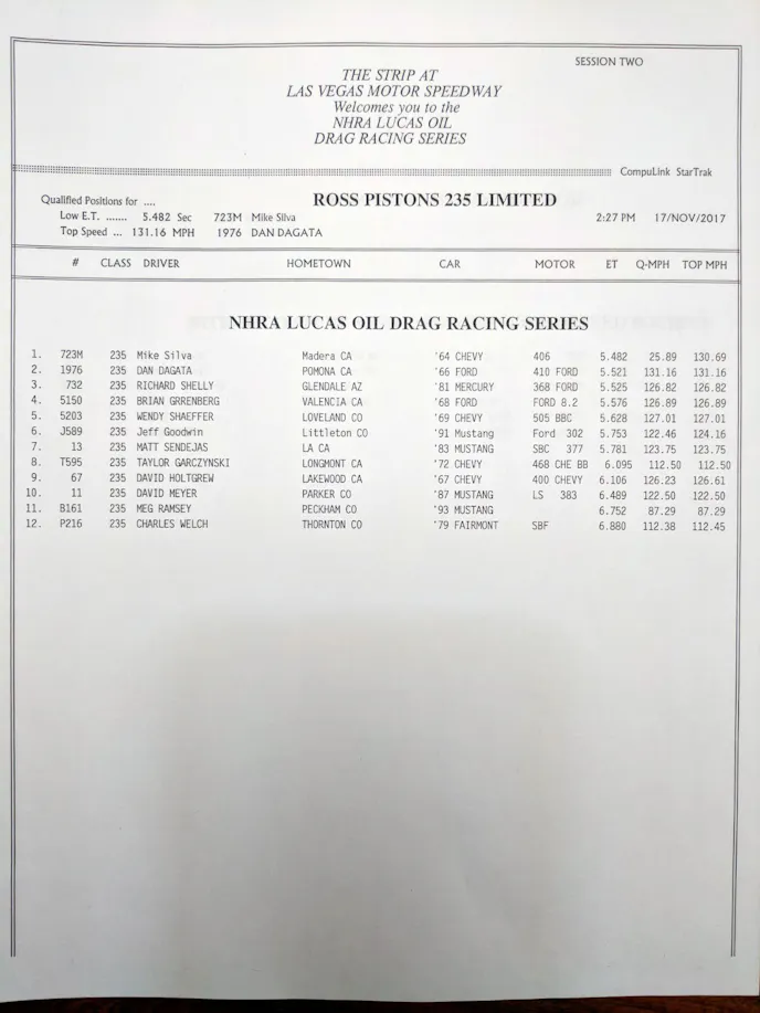 I may be a Mustang guy, but there’s a soft spot in my heart for the ol’ shoebox Nova. Mike Silva’s silver machine sits at the top of the ladder in 235 Limited with a 5.48.