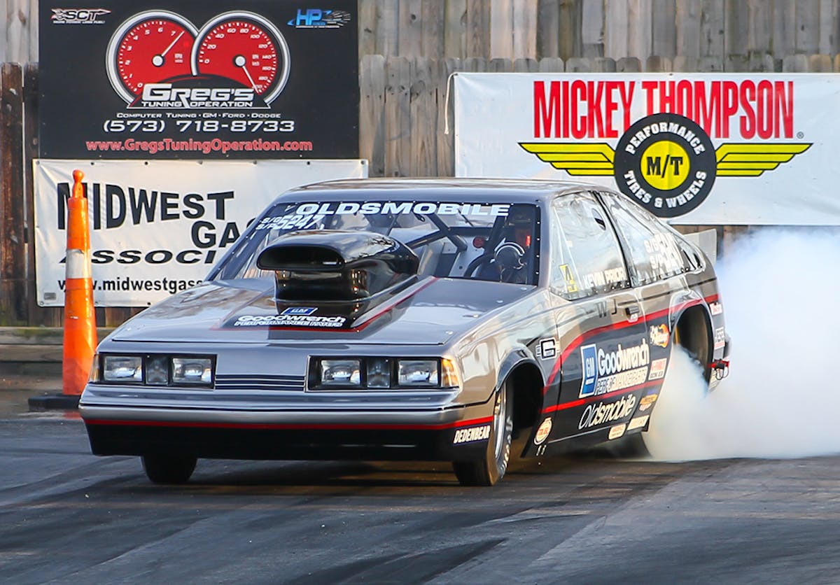Kevin and Maria Prior barely finished this spectacular tribute to Warren Johnson’s GM/Goodwrench Oldsmobile Firenza in time for the 2014 Black Arrow Cup and the car drew raves in its debut. Originally built by Tommy Mauney in 1989 as a virtual copy of WJ’s 1986 Don Ness model, the car was campaigned as a Competition Eliminator entry by Jerry Wilkerson before being updated by Jerry Bickel Race Cars when it became Paul Tracy’s Top Sportsman entry. This no vinyl wrap; Tony Lorenz perfectly recreated the paint scheme carried by WJ’s 190 mph record-setting rig in 1986.