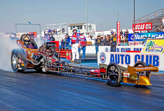 For the past 56 years drag racers from across the country come to this little “patch” in the middle of the orange orchards, to flex their muscles and give proof that he or she is the best of the best. These hallowed grounds have seen legends born, streaks started and ended, records set and broken. The names of the past represent the “Who’s – Who” of the sport. This patch in the orange orchards lay quiet each year until March, when it would come to life with the cackle and thunder of high horse power racing engines, the smell of burning rubber and the unique eye watering smell of “nitro” in the air. There was “Cha Cha”, “the Greek”, “TV Tommy”, “Jungle”, “the Fighting Irish”, “the Ridge Route Terrors”, “the Surfer”, “Hippie” and “too Rolling Stoned”.