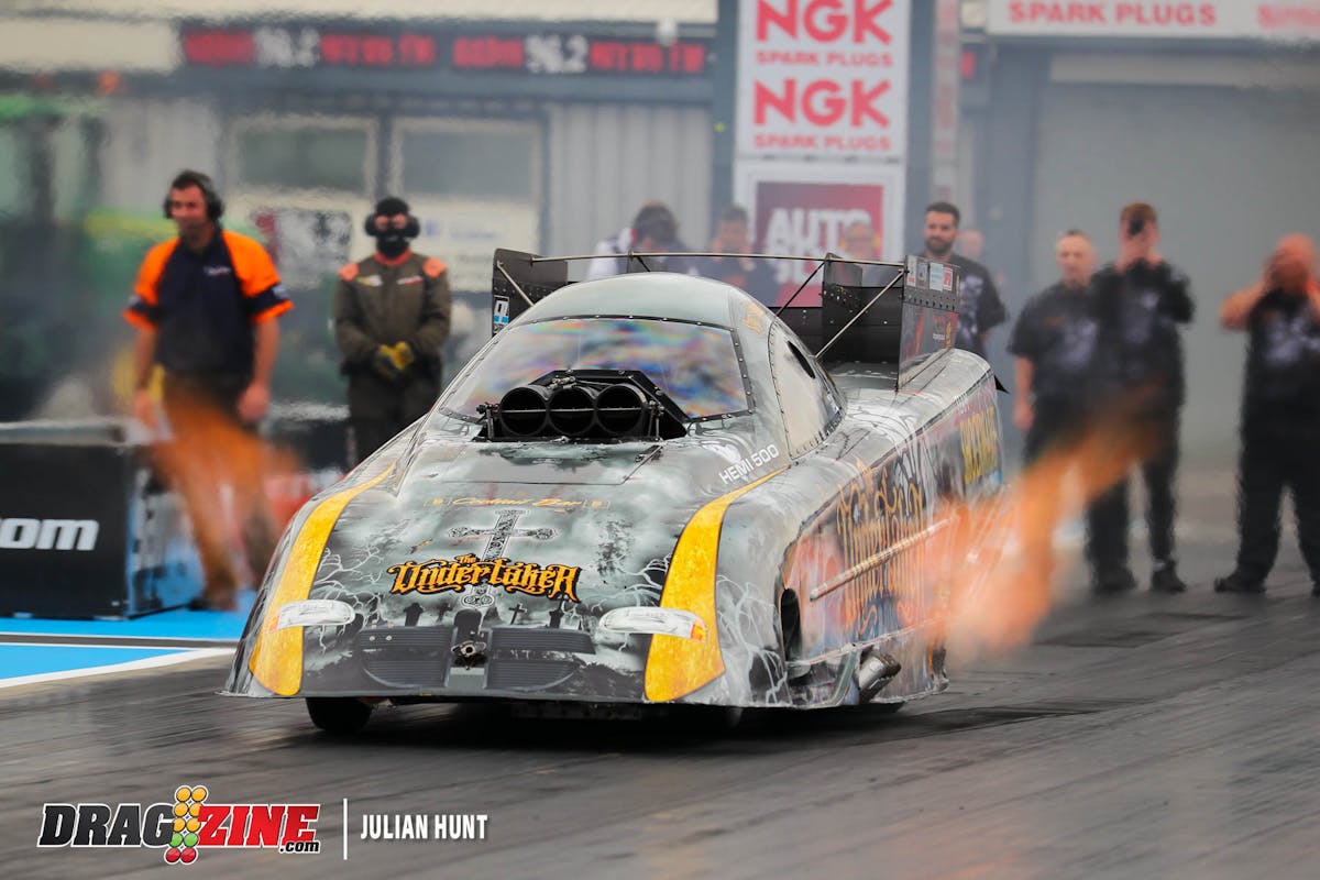 Tom Blincoe is the optimist going into round one of Xtreme Pro Mod. He told us, “Believe it or not, we have a whole, whole lot left in the car. We ran a 3.80 in the final qualifying shot but we have 3.72 or even a 3.70 ET to get out of it with some changes.”