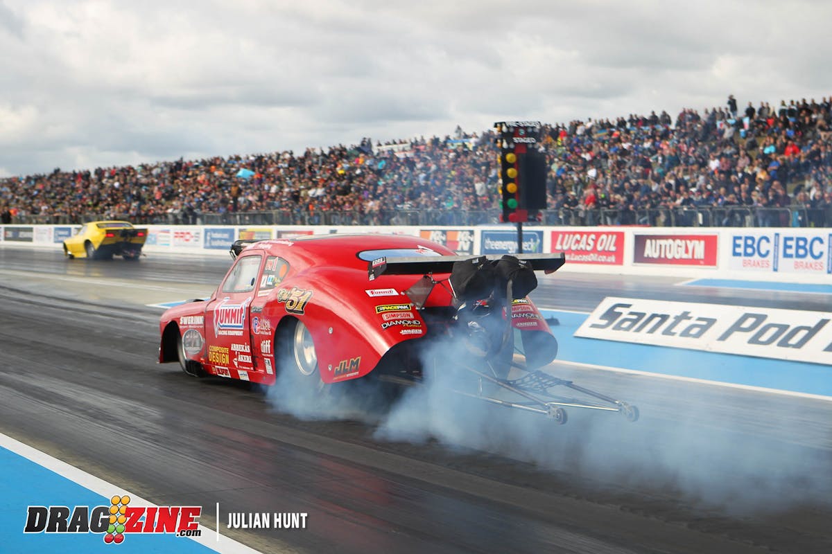 Unfortunately, in that second round, Holbrook blew a head gasket causing a harrowing top-end ride as he did everything imaginable to keep the Mustang off of both guardwalls.