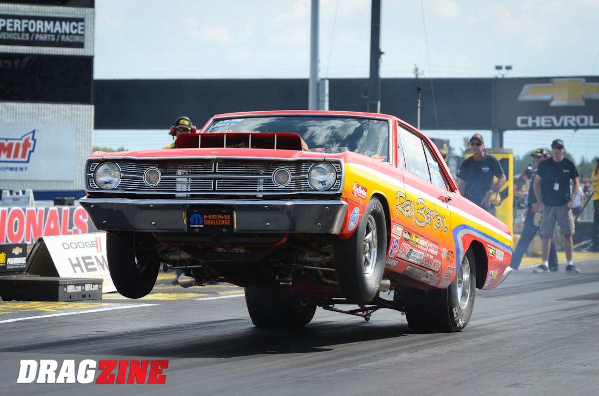 West Virginian Bucky Hess qualified fifth in the Mopar HEMI Challenge and punched through the opening two rounds of eliminations, earning himself a date with No. 1 qualifier Gary Wolkwitz. Hess’ Barracuda encountered tire spin early and he could only watch as Wolkwitz streaked to low elapsed time of the round, an 8.52.