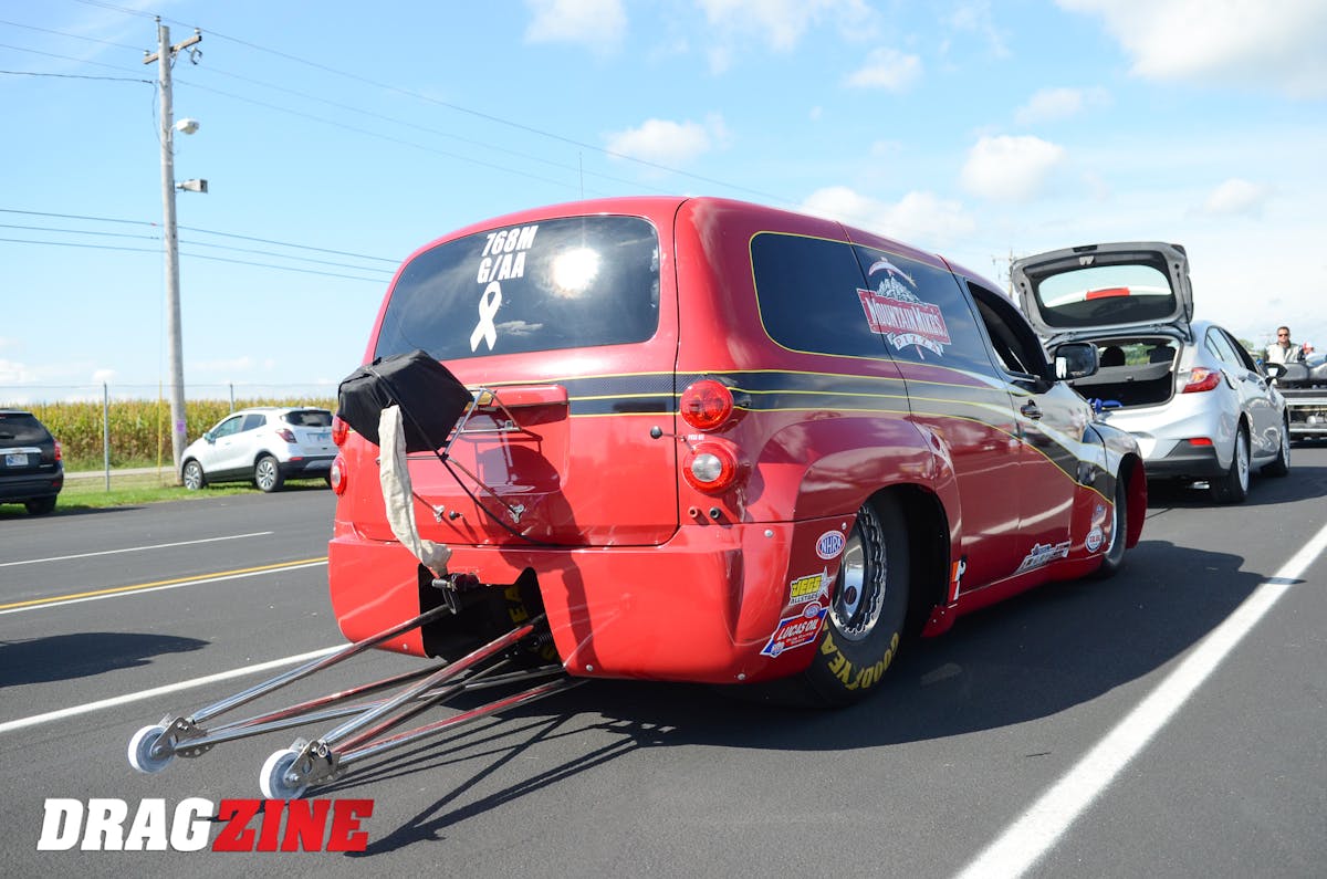 Brian Moscini made the long trek out from Redwood City, California, near San Fransisco, to mark off a bucket list item to compete at the U.S. Nationals. In Competition Eliminator, a category packed to the gills with unique, one-off, eye-catching combinations, Moscini's is perhaps the most polarizing in this weekend's field. Gary Hansen at Hansen Rae Cars built the Chevrolet HHR using a factory steel body mated with lightweight front end, doors, and other components. Madcap Racing Engines assembled the 304 cubic-inch small-block Chevrolet that powers the car in the G/AA division. Moscini has been a best of 8.32 in the car, and qualified 44th this week with an 8.48 best. He bowed out of competition with a .006 red-light to Doug Engels in round one.