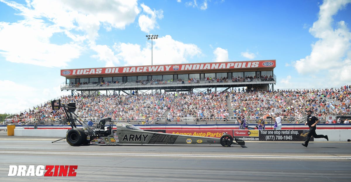 Tony Schumacher, who has won this event a record 10 times in his professional carer, is flying the U.S. Army colors here at Indy for the final time, after it was announced the military branch would part ways with Don Schumacher Racing at the close of the 2018 season. Schumacher currently sits sixth in the provisional order at 3.801.