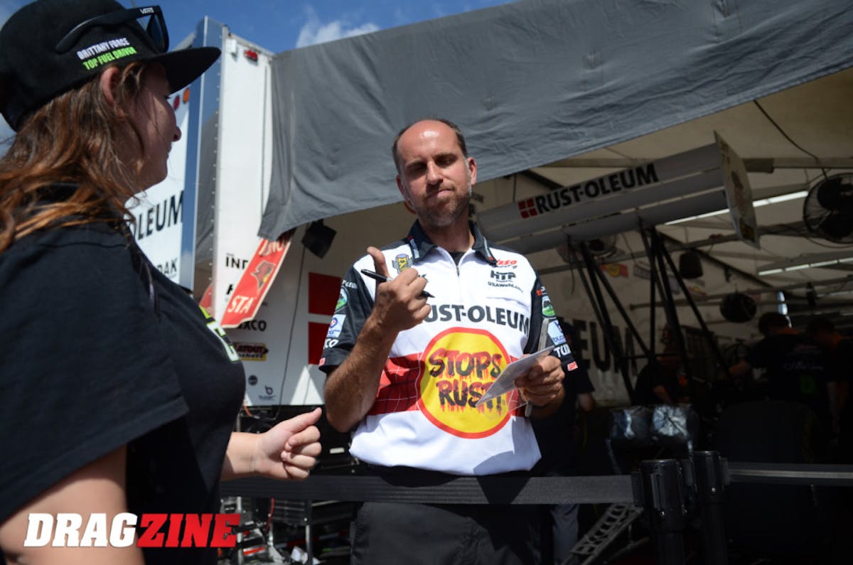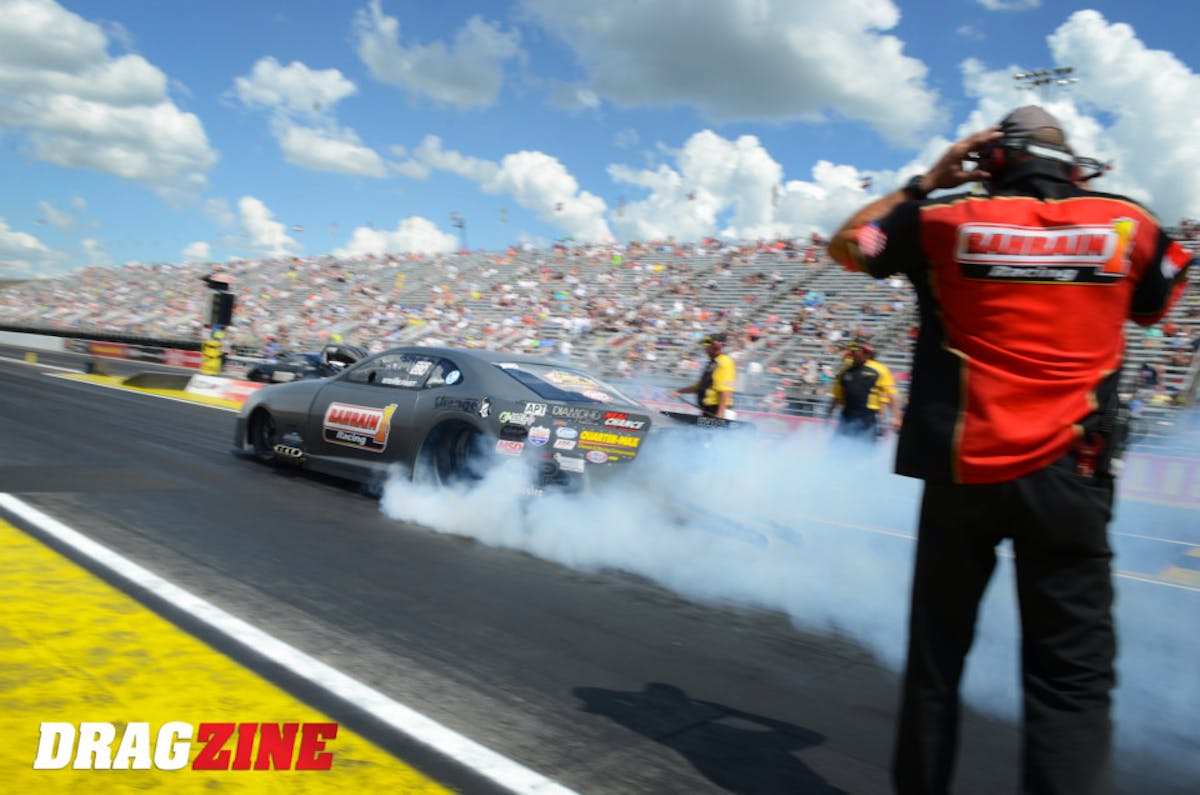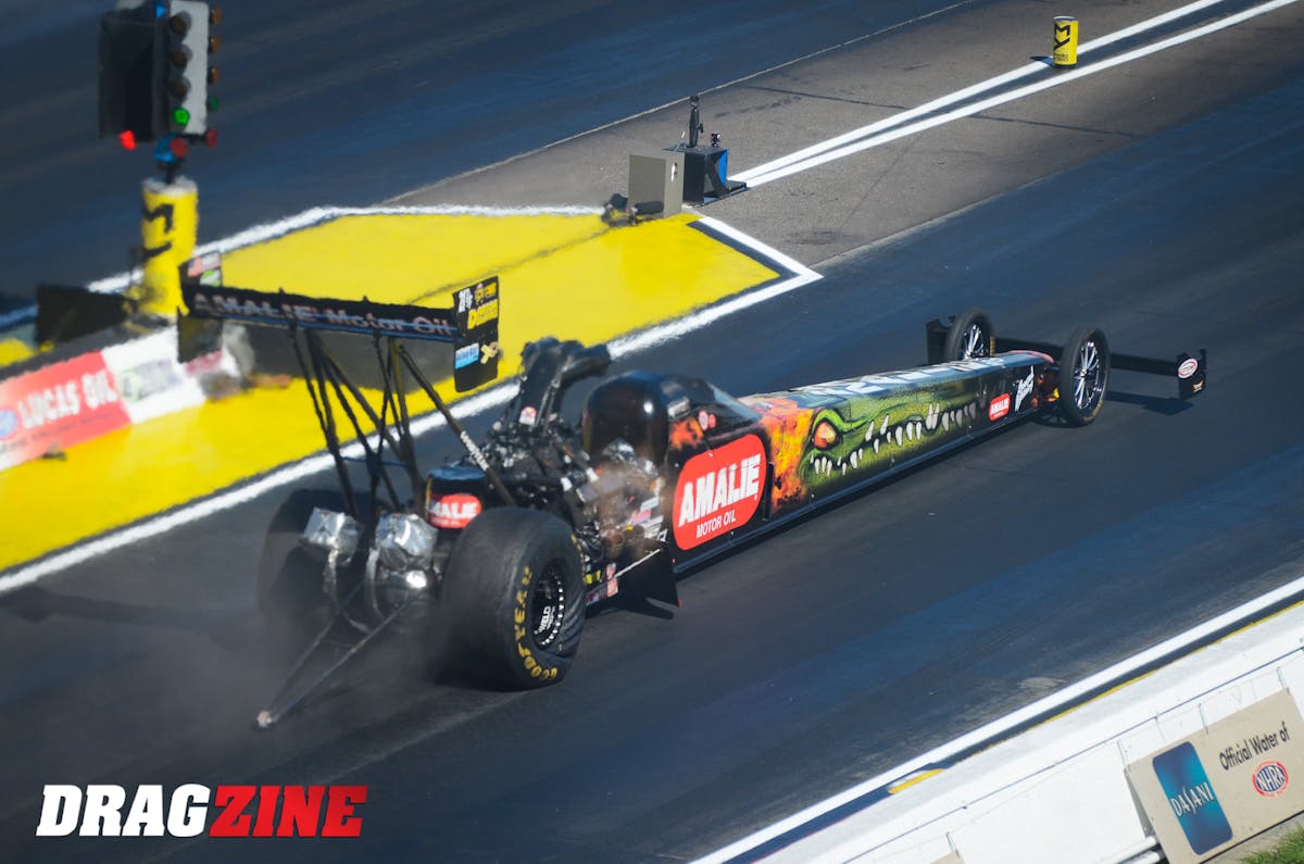 Does T.J. Zizzo approve of his Friday-night 3.812 that put his part-time team in the Top Fuel field at No. 7? You’d better believe it. Noted Zizzo: “We have a great team. We have faith in our parts, we have faith in our team members, and that’s all you need in this sport. If you have faith in your parts and faith in your team, good things happen.”