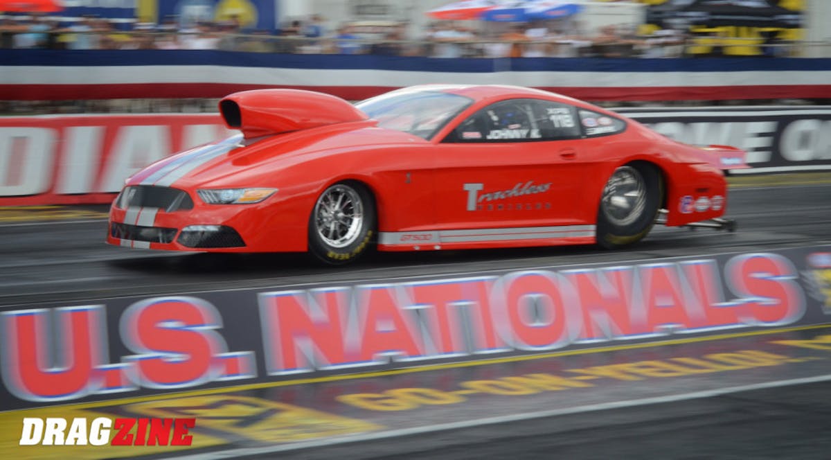 The U.S. Nationals would be nothing without some controversy, and it got that in a turning-back-history fashion today in the Factory Stock Showdown. Points leader Joe Welch, in the second session of qualifying, clocked the first seven-second run in NHRA history with a crushing 7.98, only to have the run disallowed a couple of hours later following a post-run inspection. According to Welch and his crew, the NHRA Technical Department's issue stemmed from the use of an adjustable lower four-link bar; per the rules, this bar is to be non-adjustable, however, per Welch, the NHRA has inspected and approved of the rear suspension since the car first debuted in 2015, including here this week at Indy. Welch's car was thoroughly inspected at Gainesville earlier this year, and while the NHRA alerted them to an issue with their anti-roll bar, they say the lower four-link bar again passed. The bar, provided by Team Z Motorsports, has never been adjusted by the team, and they contend that it had no bearing on their 7.98-second run. Despite Welch's frustration with the decision, given its prior approval, he and his team agreed to weld the bar into a non-adjustable state for tomorrow's final qualifying sessions, where Welch, who encountered mechanical woes in the first session, presently does not have a qualified time on the sheets.